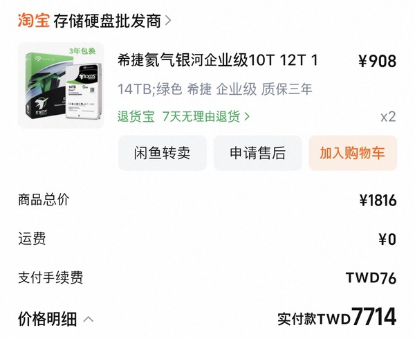 至於主機殼、機櫃及儲存硬碟我則是從淘寶購入。